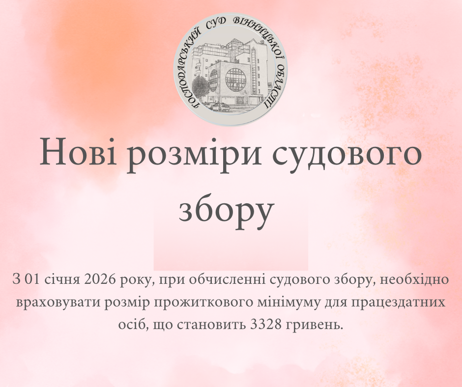 Отже, платникам, з 01 січня 2026 року, при обчисленні судового збору, необхідно враховувати розмір прожиткового мінімуму для працездатних осіб, що становить 3328 гривень.